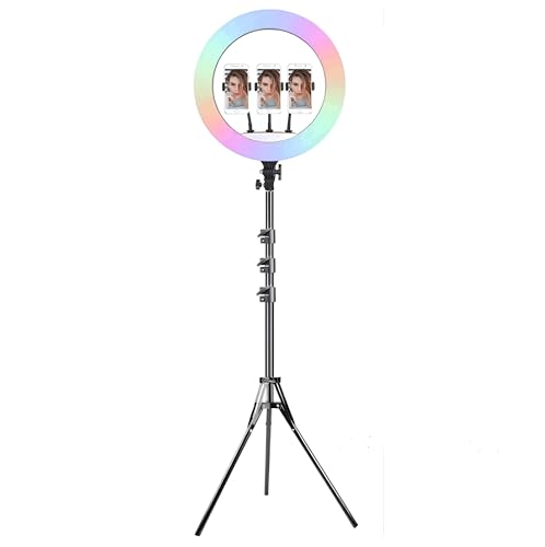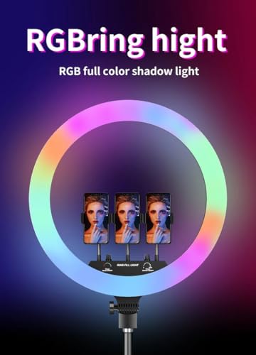 Generic - رينج لايت بإضاءة ليد RGB مع 3 حوامل موبايل وستاند ثلاثي - طاقة 80 وات - درجة حرارة لون قابلة للتعديل - دوران 360° - بلوكاما R56