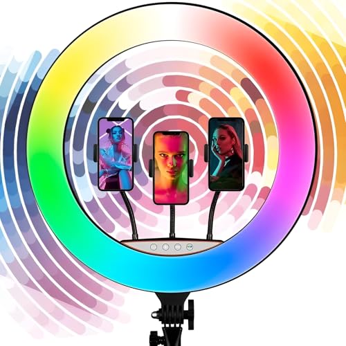 - رينج لايت بإضاءة RGB LED متعددة الألوان تمنحك خيارات لا نهائية من الألوان لإضاءة احترافية أثناء البث المباشر أو التصوير.