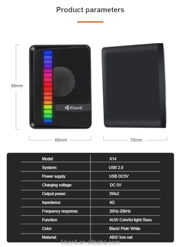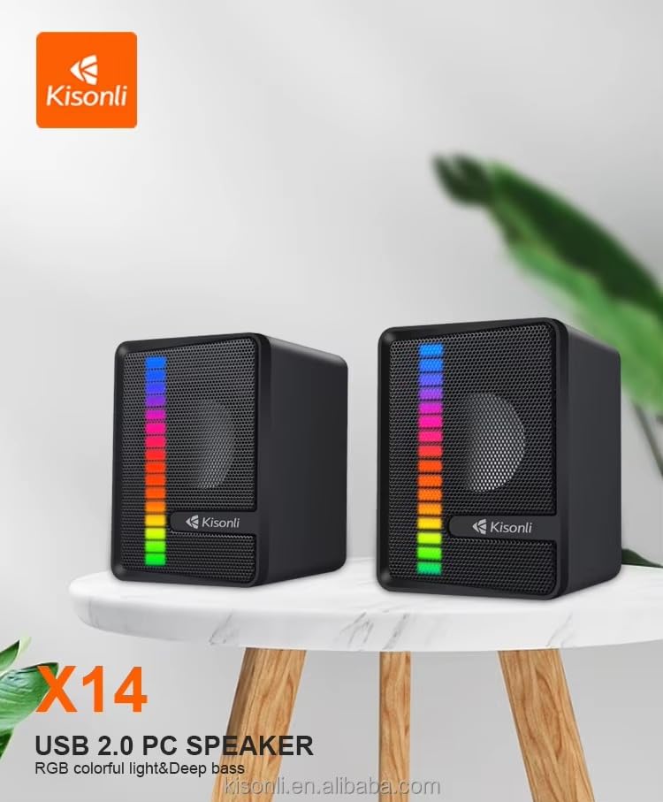 Generic - سماعات كيسونلي مع إضاءة RGB للكمبيوتر – X14 - صوت استيريو عالي الجودة مع تأثيرات لونية متعددة- الاتصال السهل عبر منفذ USB