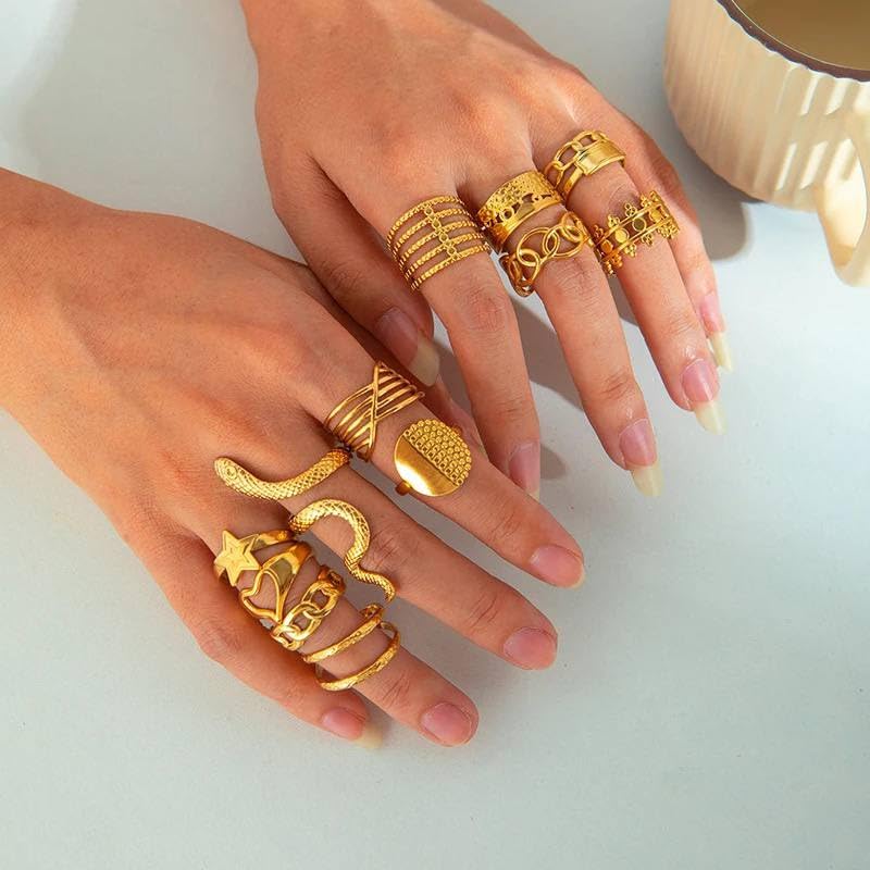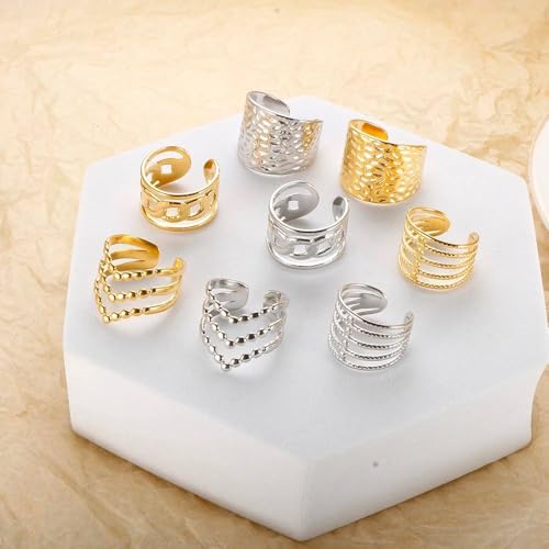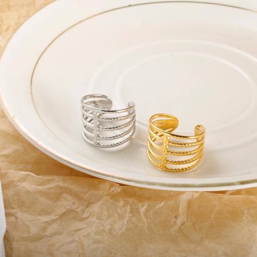 Generic - خواتم متعددة الطبقات فينتاج عصرية خفيفة فاخرة قابلة للتعديل خاتم اصبع مفتوح للنساء هدايا مجوهرات