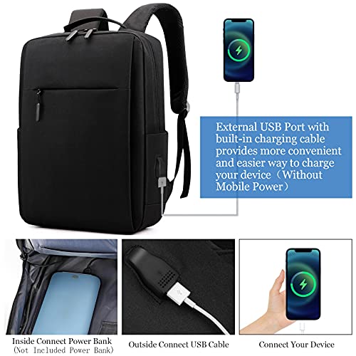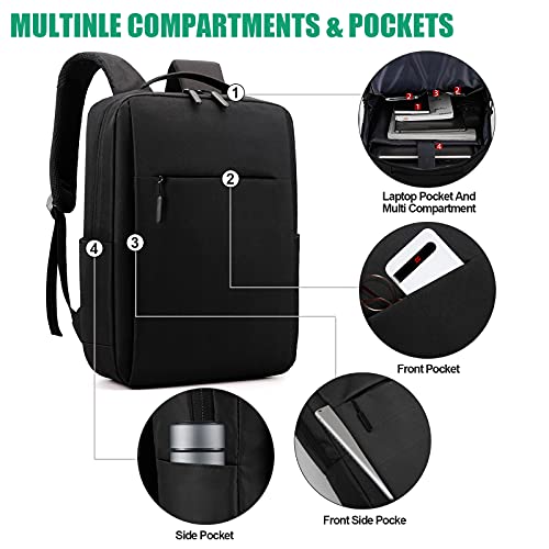 RioGree - شنطة ظهر للاب توب 15.6 بوصة من ريو جري اكسسوارات السفر والمدرسة لاب بتصميم نحيف مع منفذ شحن USB للاعمال التجارية والهدايا للطلاب والرجال والنساء أسود