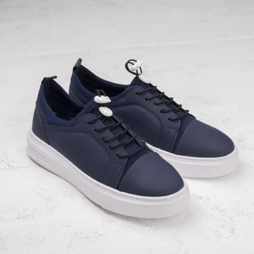 Roadwalker - RM-O12-Roadwalker knitwear Lace-up Fashion Sneakers shoes for men - Navy, 43 EU