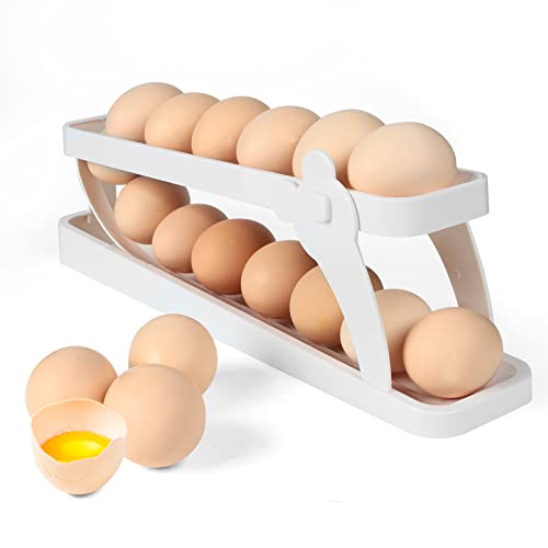 Chfory - موزع بيض دوار قابل للطي لتوفير المساحة، موزع بيض تلقائي، حامل ورف لعرض البيض بطريقة دوارة تلقائيًا للتخزين في المطبخ والثلاجة