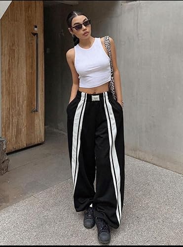ROMBA SPORT - Romba Women's Elastic Waist Flare Pants with Side Stripes - Perfect for Everyday Style and Comfort - High Waist Shalston