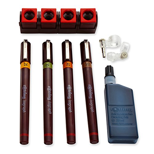 Rotring - Rotring Isograph Pen Set 4x Technical Pens (0.20mm, 0.30mm, 0.40mm, 0.50mm) + Accessories