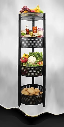 Generic - Round Trolley Kitchen Storage Cart with Fruit Vegetable Storage Baskets (Black, 4 Layer)