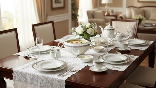 - 12 flat plates 27 cm and 12 deep plates 23 cm and 12 gateau plates 21 cm and 12 soup bowls 13 cm
