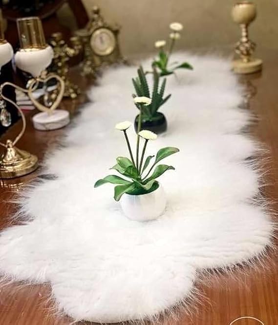 - MULTI-PURPOSE UTILIZATION – The faux fur table runner is ideal for indoor decoration, festival party, family gathering and more. Also able to make an upscale touch of texture, hammered silverware, cottage ceramic products. The bright color scheme creates a perfect contrast with dark wooden tables and solid tableware.