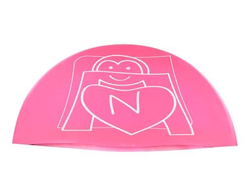rustomart trade - بونيه السباحة من السيليكون سبارت بطباعة كلمة N Heart من راستوم ارت تريد، لون وردي