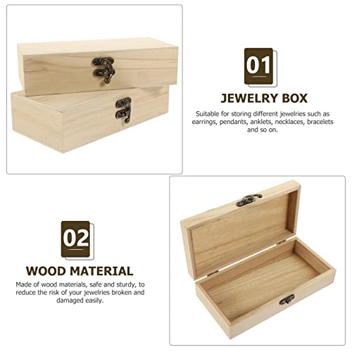 SAFIGLE - SAFIGLE 2pcs Box Blank Storage Box Sundries Storage Case Decorative Storage Case Wooden Jewelry Organizer Jewelry Container Storage Cases for Jewelry Rectangular Jewelry Case Trinket Case