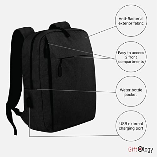 SANTHOME - SANTHOME GiftOlogy Anti-Bacterial 15” Laptop Backpack | School Bag with USB Charging | Durable business casual or travel laptop bags for men women students (Black), Black