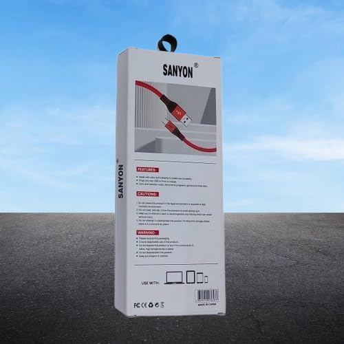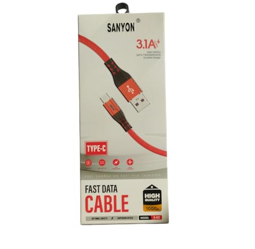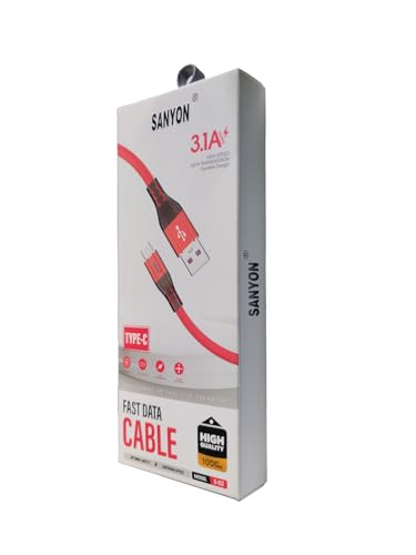 Sanyon - كابل متين للشحن السريع ونقل البيانات بمخرج 3.1 امبير من النوع سي سانيون اللون أزرق محول الشحن حاسوب محمول لوحي
