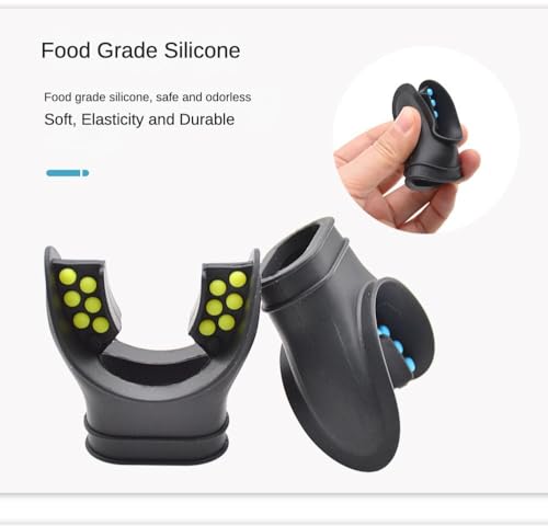 - 3D ELLIPTICAL BUMPS DESIGN --- The Scuba diving mouthpiece is made of high-quality food-grade silicone, seawater corrosion resistant, durable, and not easily deformed, 3D elliptical bumps design reduces oral fatigue and prevents the mouthpiece from falling off