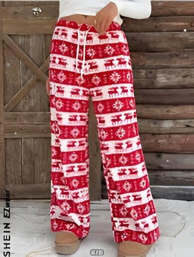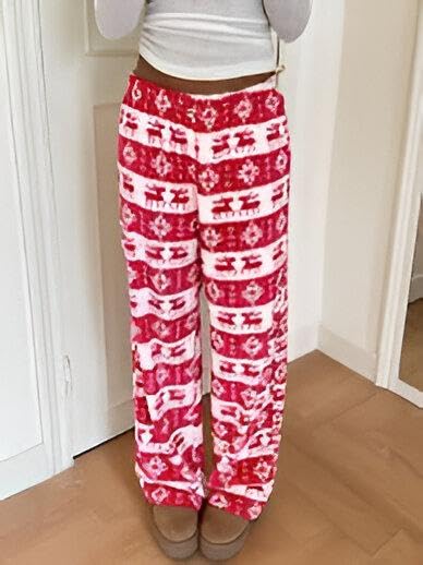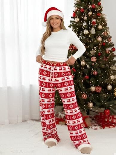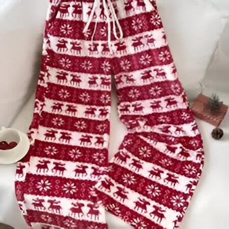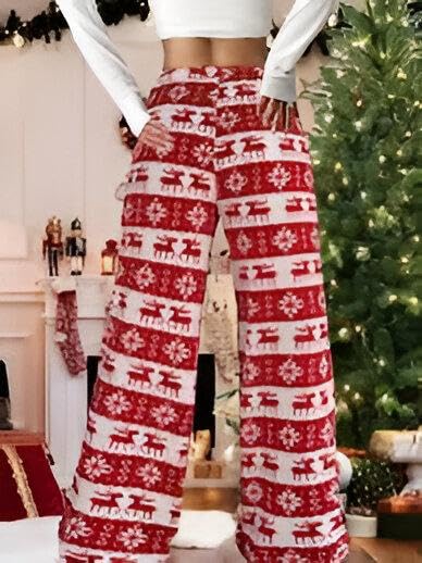 Generic - Seasonal Sleep Pants - Women's comfortable flannel lounge pants featuring a cheerful snowflake and Christmas tree pattern, designed with a wide leg for ultimate relaxation.