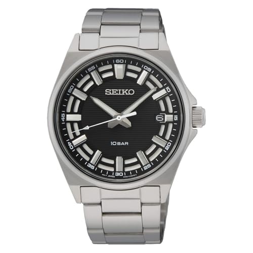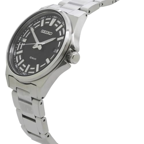 Seiko - ساعة بمينا أسود وسوار فولاذ مقاوم للصدأ للرجال - SUR505P1 من سيكو، تناظري
