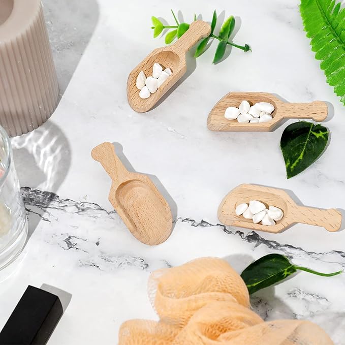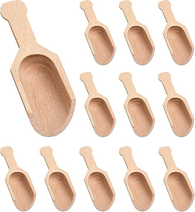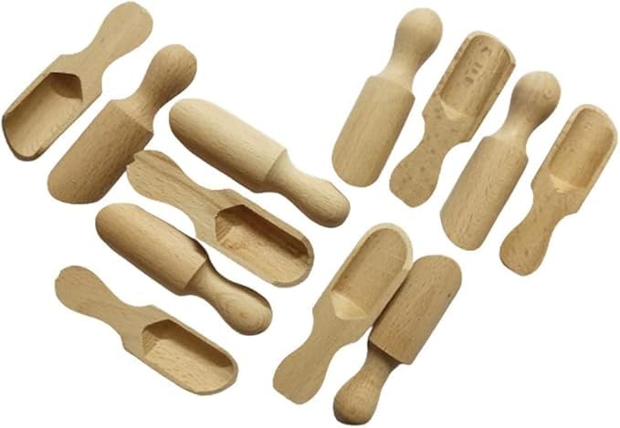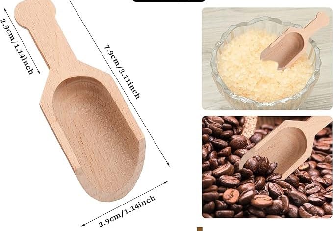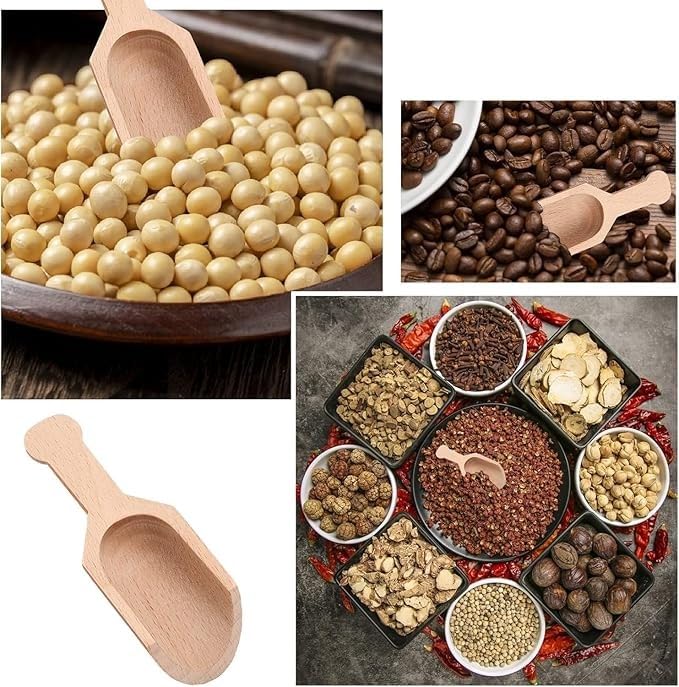 - MULTI-USE SET: Contains 6 mini size wooden shovel perfect for filling and serving seasonings, spices, legumes, coffee