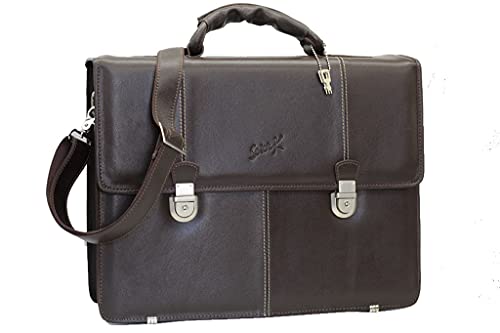 SevenK - سيفن كيه شنطة عمل بـ 3 اقسام مع مقبض وحزام كتف, بني، للرجال