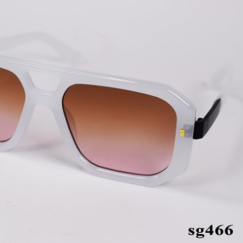 Generic - sg466 Stylish Rectangular Sunglasses, Gradient Brown Lenses, White Plastic Frame