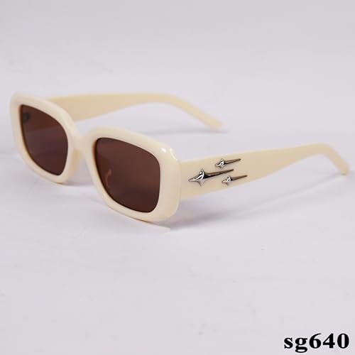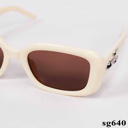 Generic - sg640 Rectangular Sunglasses, Beige Frame, Brown Tinted Lenses