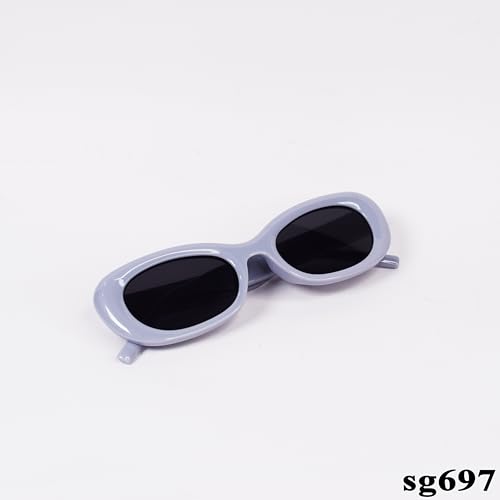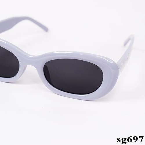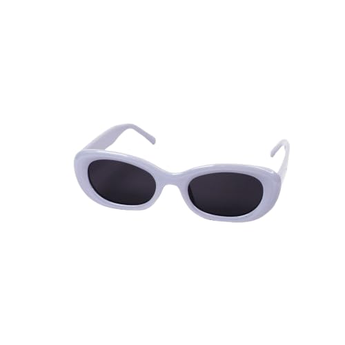 Generic - sg697 Oval Sunglasses, Solid White Frame, Dark Lenses