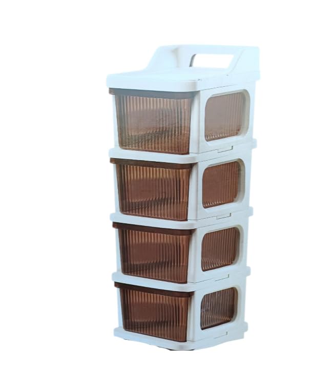 Generic - Shannon Twist Storage 4 Door/وحدة تخزين بلاستيك 4 أدراج بعجلات من الوطنية|منظم متعدد الاستخدام للمنزل والمكتب-تصميم قوي وخفيف الوزن لسهولة النقل-مثالية للأدوات، الملابس، وألعاب الأطفال (بيج *بني)