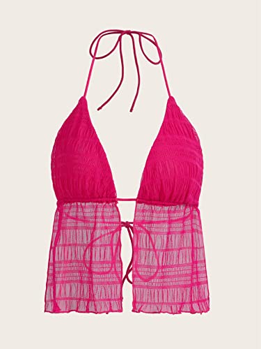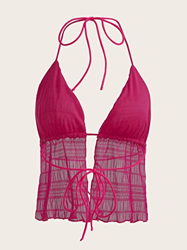 SHEIN - SHEIN ICON Split Hem Tie Backless Mesh Halter Top