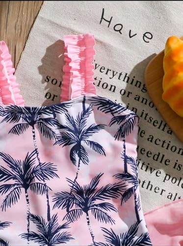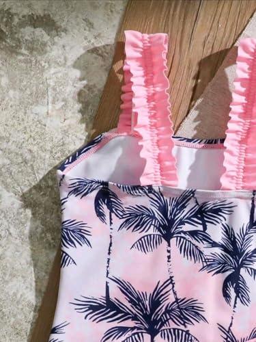 Generic - Shein model - 2 pcs Young Girl Coconut Tree Print One-Piece Swimsuit and cover up