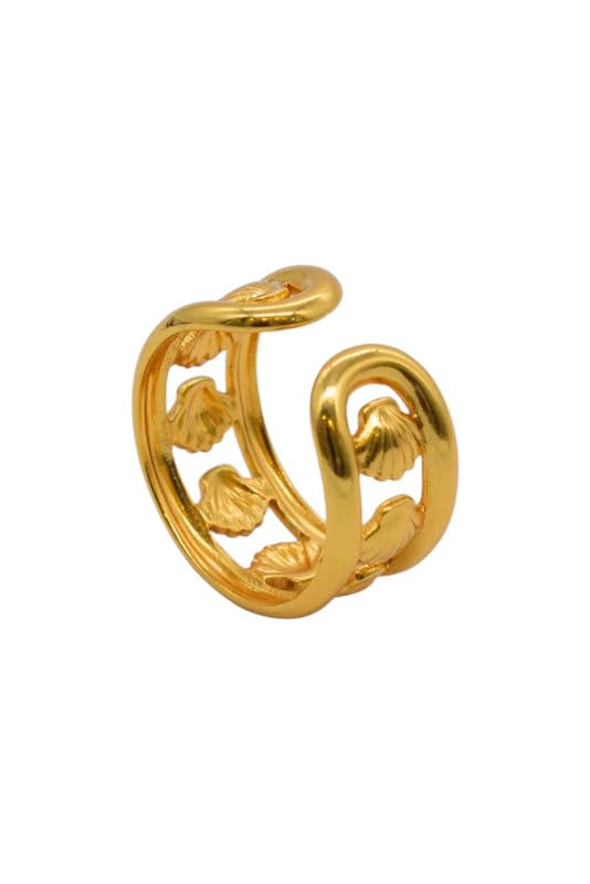 Generic - Shell Shape Round Stainless Steel Open Ring - Gold
