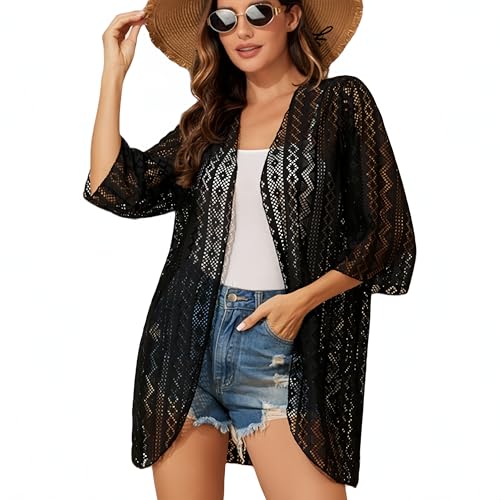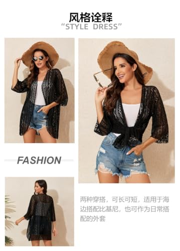 SHOWDAY - SHOWDAY Bohemian Sequin Glitter Shawl Wrap Poncho - Kimono Cardigan Open Knit Crochet Lace Front Open Sleeveless Top Cardigan Crochet Vest Bikini Cover up Summer Beachwea