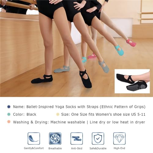 SHOWDAY - Showday Yoga Socks for Women Non-Slip Grips & Straps, Ideal for Pilates, Pure Barre, Ballet, Dance, Barefoot Workout