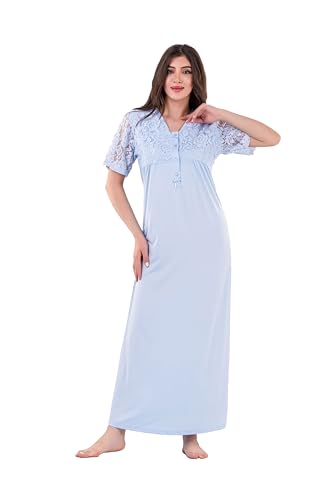 Dadoush - Shower Dadosh Women's Long Nightgown with Lace Embroidery for More Charming and Attractive - Short Sleeve Nightgown for Women Comfortable and Elegant Design (Sky, M)