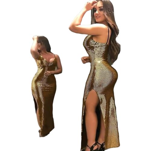 Shiny sidewall long dress with open chest design - eye-catching style
