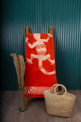 Signoola - فوطة شاطئ من سيجنولا، تصميم تمساح، لون برتقالي، 100% قطن، مقاس 90 × 170 سم