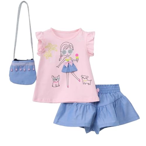 SIKA - SIKA Girls Set of 3 Pieces Sleeveless T-Shirt&Shorts,Handbag Printed Girl Set of 3 Pieces