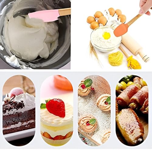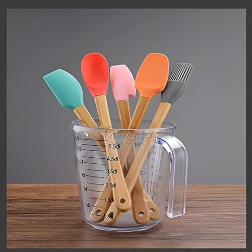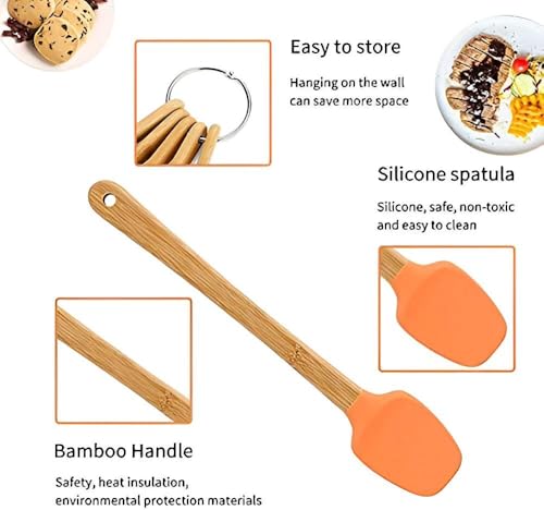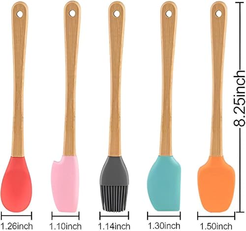 Generic - Silicone Spatulas Set of 5, Non-Stick Heat Resistant BPA Free Spatulas with Bamboo Handles Perfect for Cooking, Mixing and Baking