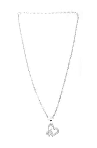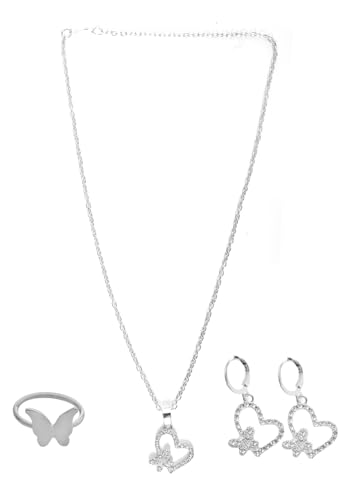 Generic - Silver Chain Necklace Earrings Ring Hearts Butterfly Set for Women