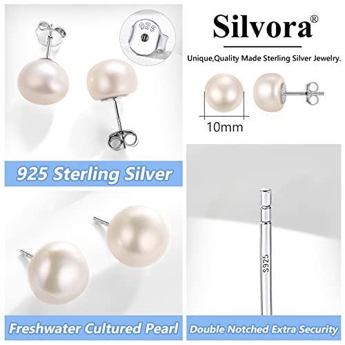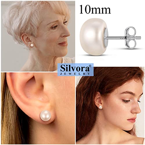 Silvora - اقراط من اللؤلؤ الحقيقي الفضة الاسترلينية 925 للنساء 4 ملم 6 8 10 مرصعة باللؤلؤ المستزرع في المياه العذبة