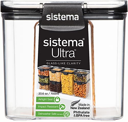 Sistema - علبة حفظ الطعام مربعة الترا من سيستيما، 700 مل - شفافة واسود