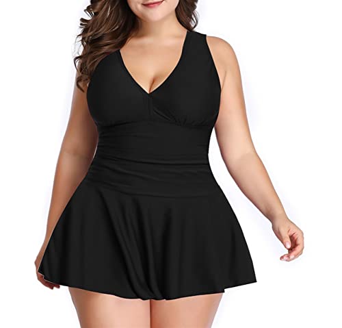 Bradykin - SIX RABBIT Plus Size Swim Dress Two Piece Tankini Swimsuits for Women Flowy Bathing Suits with Boyshort