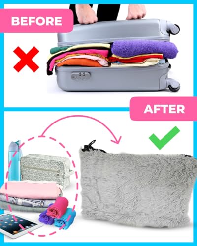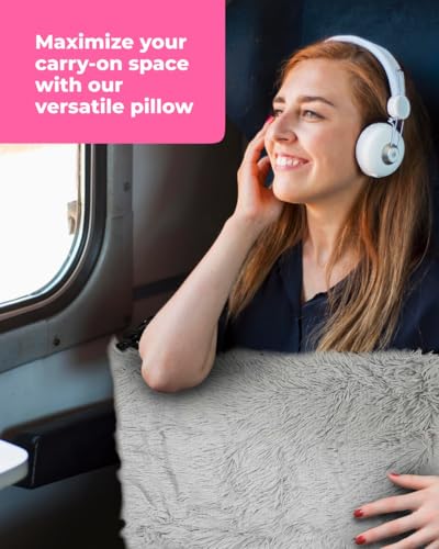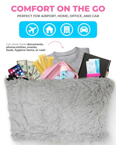- [ PILLOW TRAVEL BAG CARRY ON COMFORT ] - Experience maximum comfort and convenience with the pillow travel bag, crafted from an ultra fur faux material for a luxurious feel. Enjoy a relaxing journey with the soft and plush material providing maximum comfort