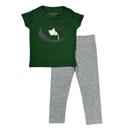 Baby Co. - Sleeping Cat Girl Set (Green T-shirt & Grey Leggings)