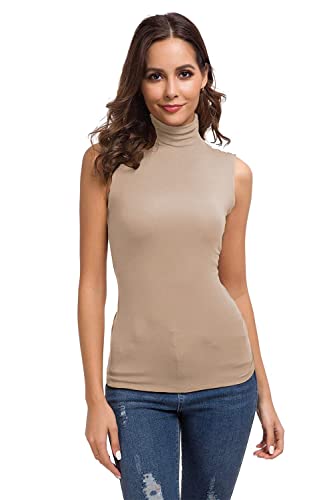 Generic - Sleeveless Cotton High Neck Basic Undershirt for Women (Beige, Medium)
