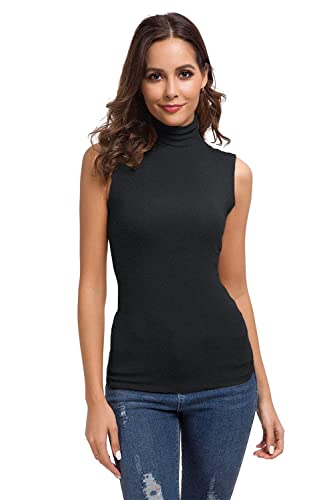 Generic - Sleeveless Cotton High Neck Basic Undershirt for Women (Black, Extra Large)
