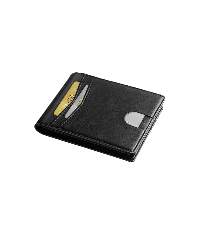 Generic - محفظة رفيعة للرجال من الجلد الطبيعي بخاصية حجب تقنية تحديد الهوية بموجات الراديو ، ثنائية الطي بجيب امامي مع مشبك للنقود (اسود - 1)