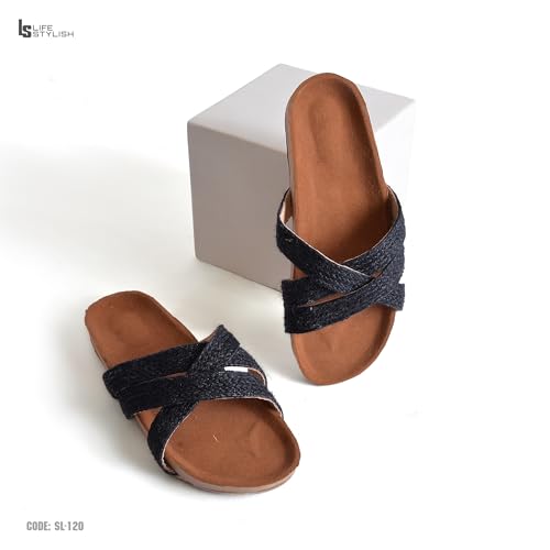 Life Stylish - Slipper Flat Material Burlap SL-120