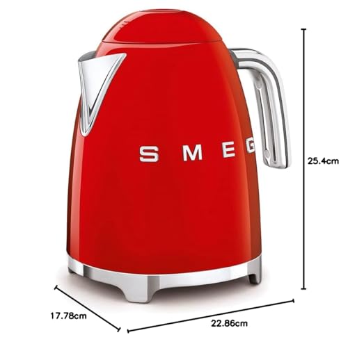 Smeg - غلاية كهربائية من سميج بلون أحمر، مصنوعة من الستانلس ستيل، مع إيقاف تلقائي وقاعدة دوارة 360 درجة وغطاء سهل الفتح، سعة 56 أونصة