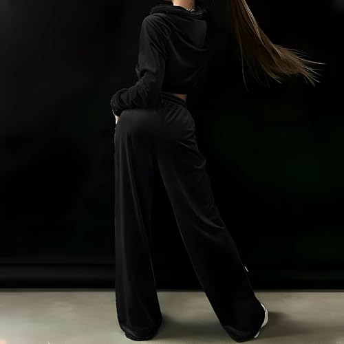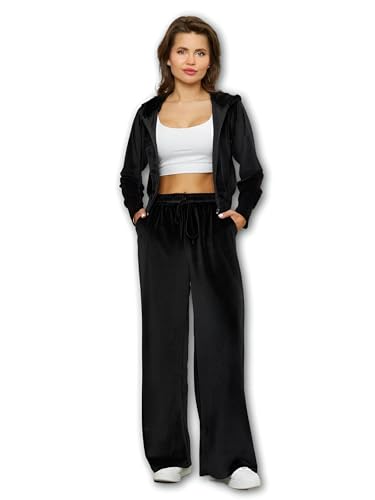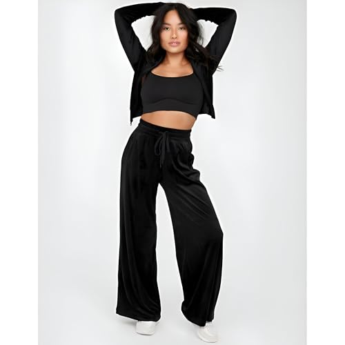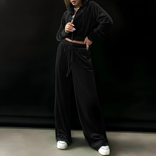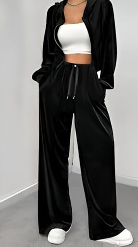 Generic - Soft plush pajamas set - from 60k to 80k-elegant black velvet two-piece women's pajamas with zipper and wide trousers with adjustable belt size