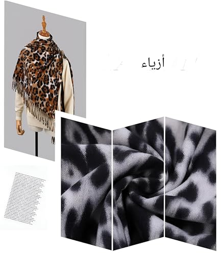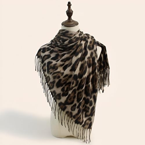 Generic - Soft Shawl - Lightweight but cozy women’s cashmere scarf with leopard accents, beautifully fringed border, and timeless design for warmth with effortless sophistication