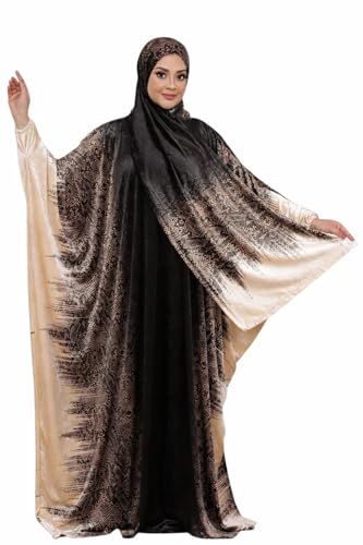 Generic - Soft Velvet Isdal Abaya with Attached Veil - Elegant Brown x Beige | Prayer | Ramadan | One Size Up to 150K