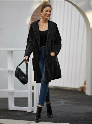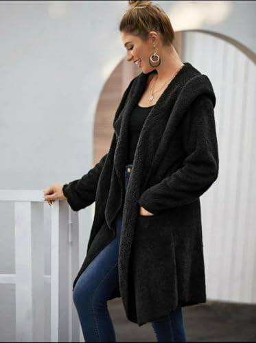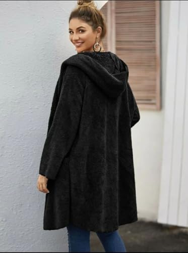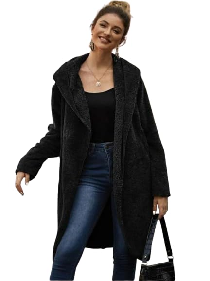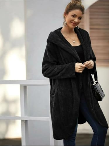 Generic - بالطو تيدي سادة بتصميم مفتوح من الأمام مع جيبين وغطاء للرأس
